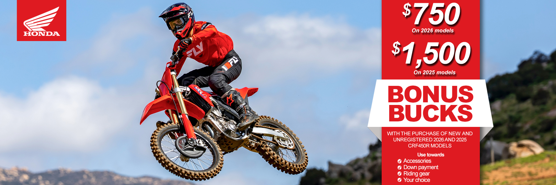 Fixed APR starting at 3.99% on 2024 CRF450R